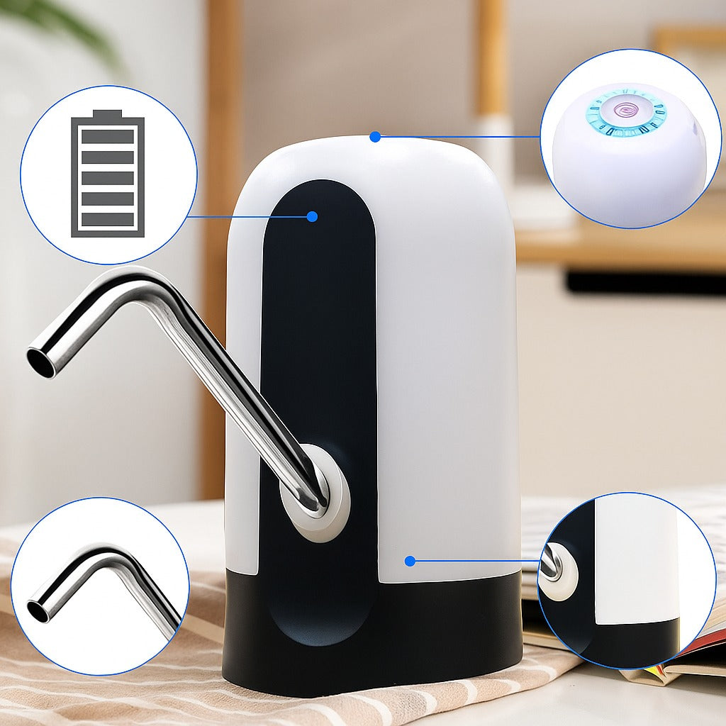 y usar, extrae agua de botellones con solo presionar un botón. Portátil, recargable y fabricado con