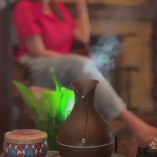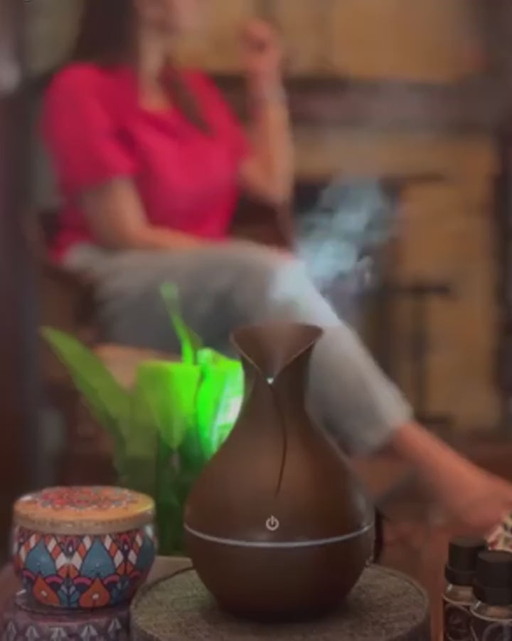 Transforma tus espacios en un ambiente lleno de calma y frescura. Su elegante diseño en forma de flor con acabado en madera combina con cualquier decoración, mientras disfrutas de los beneficios de la aromaterapia.