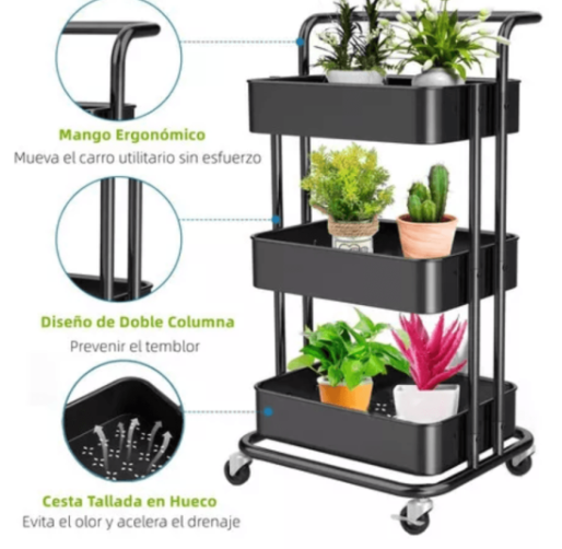Estante multifuncional de 3 niveles, ideal para cocina, baño o cualquier espacio del hogar. Su diseño rodante permite un movimiento de 360° fácil y sin esfuerzo.