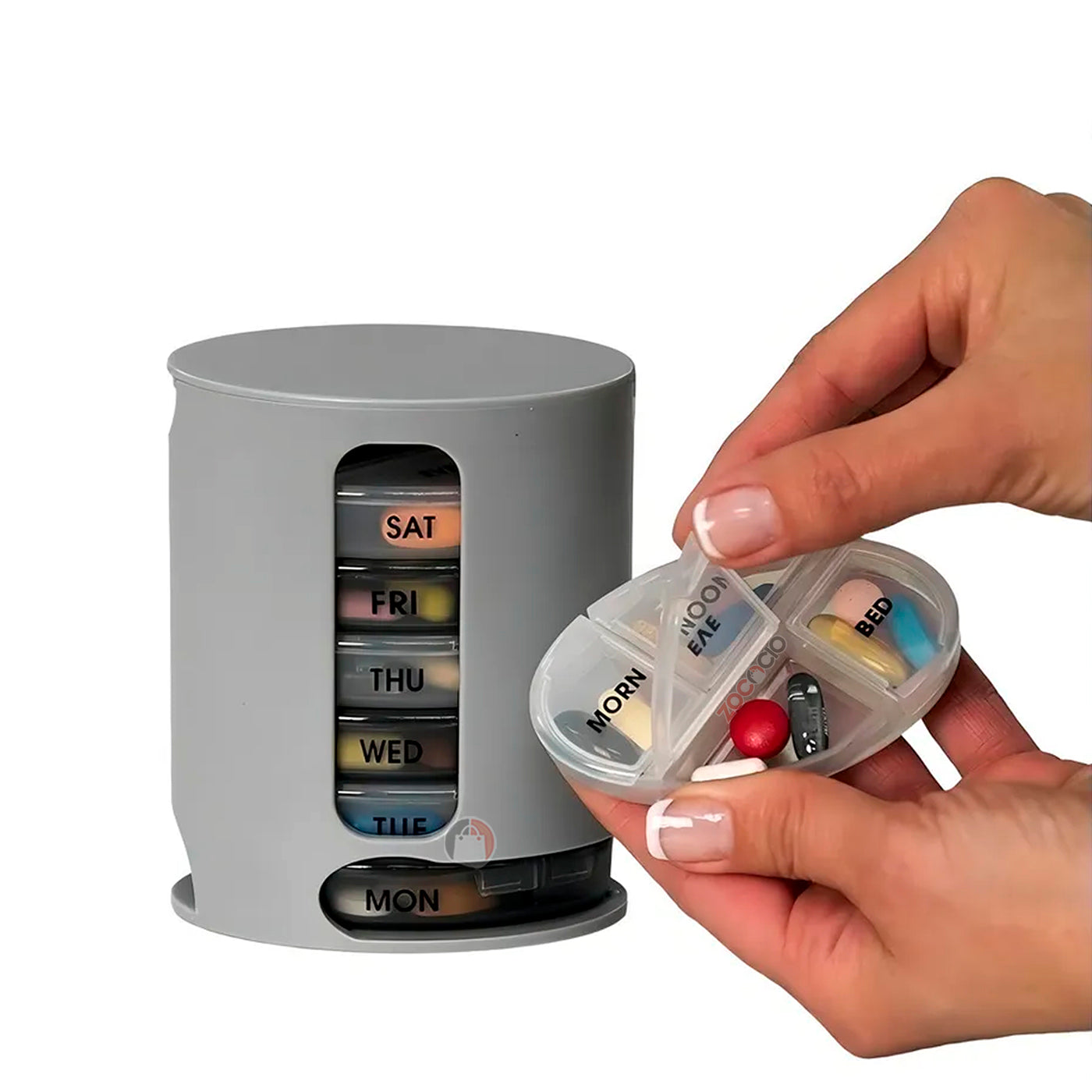 Mantén tus medicamentos organizados y listos para usar con este práctico organizador semanal. Su diseño compacto y seguro facilita llevar tus pastillas diarias a cualquier lugar.